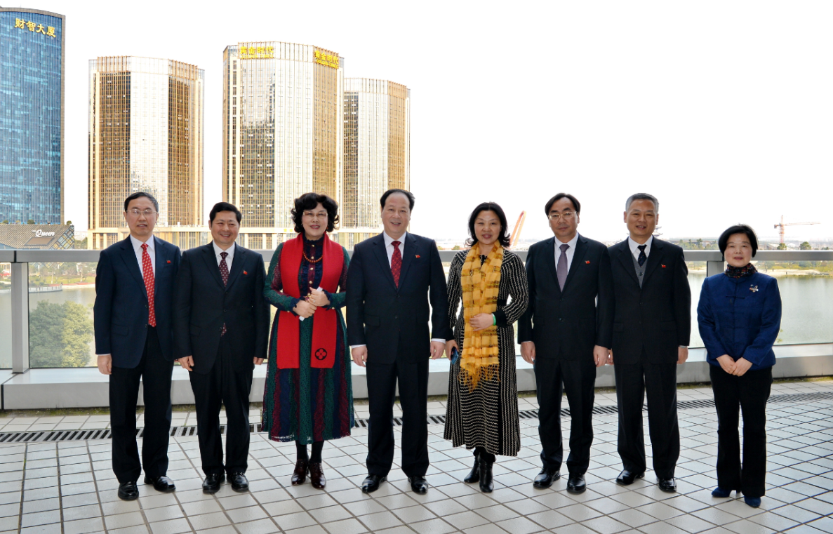 今天上午,紹興市四}套班子為出席全國人代會的李藝連、車曉端等@四位在紹全國人大代表舉行:了歡送儀式。下午,新昌縣四套班子、%縣婦聯及女企業家協會領導專程來到尊龍凱時集團,看^望即将赴京出席全國人大會議的李藝連代表。