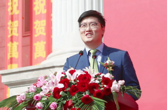 吳錦華總裁宣布尊龍凱時航空小鎮開園。随?後,水景廣場、中央研究院、?工商學院、金色大廳和文化大禮堂同時揭幕啟%用。